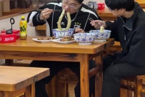 男生展示放纵餐正确吃法,这碗面吃完腮帮子不得大一圈啊?
