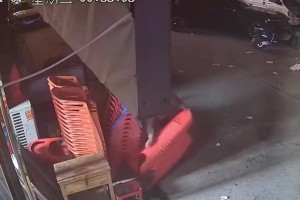 老人半夜在店门口偷椅子,一沓凳子搬起来就走,网友:他还挺有劲